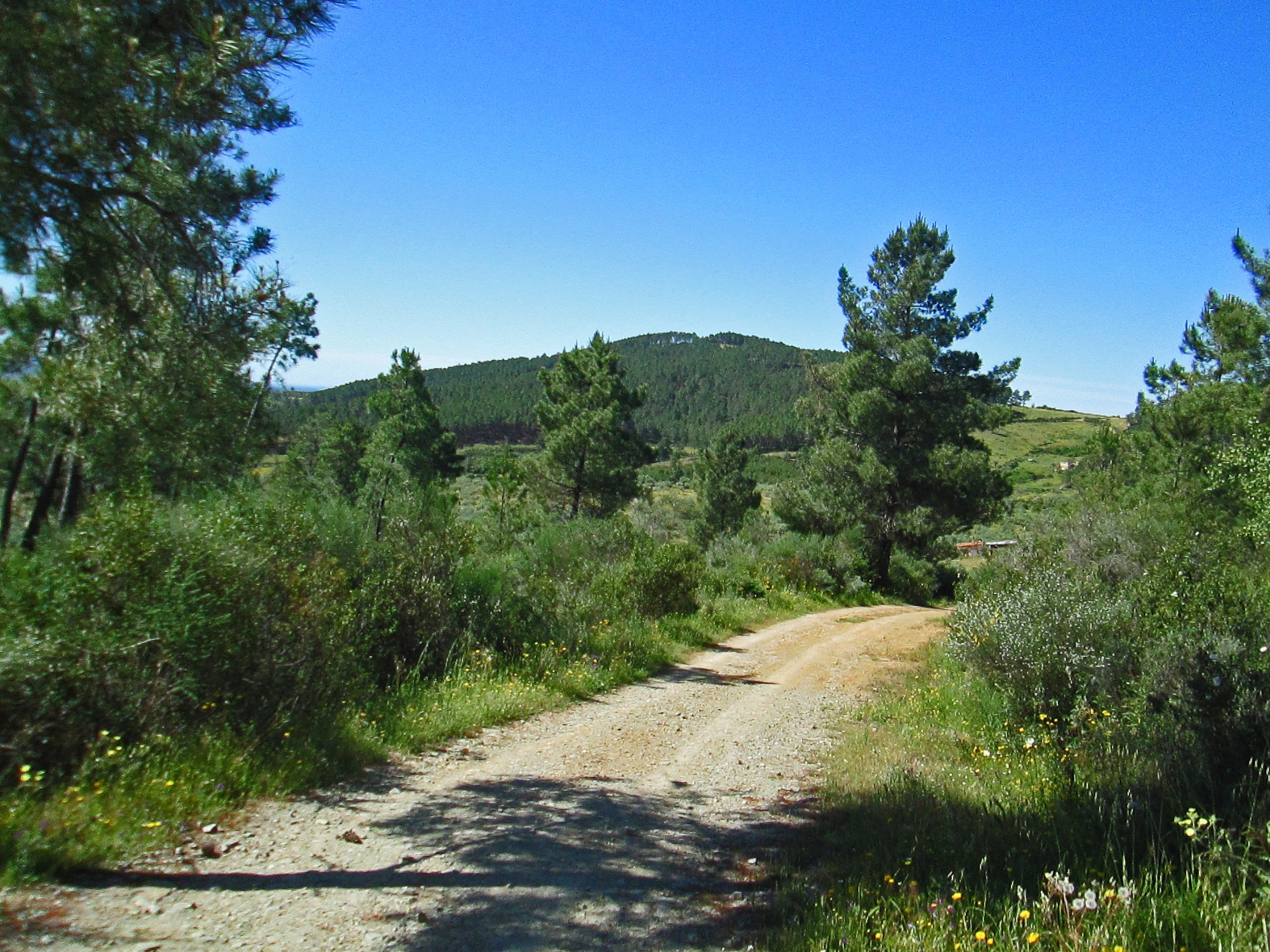 La travesía toma una pista que sale hacia la izquierda en ascenso y entra en una zona de subidas y bajadas continuas, donde los pinos se alternan con los eucaliptos. Los distintos cruces de pistas obligan a prestar atención al recorrido para evitar perder la traza principal. El sendero pasa por delante de un puesto de carabineros abandonado y más allá se dejan a la izquierda las ruinas de una casa fortificada. Ambos anuncian la presencia de la cercana frontera que se encuentra en la orilla opuesta del río Erjas.